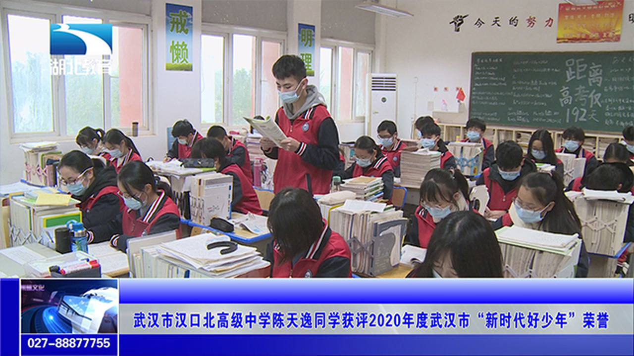武汉市汉口北高级中学陈天逸同学获评2020年度武汉市“新时代
