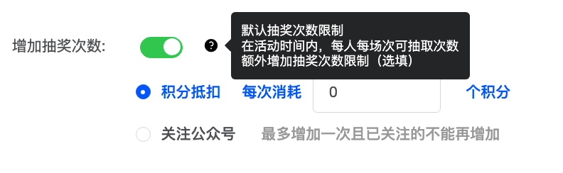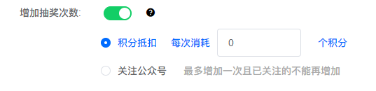 (3)增加抽奖次数:可通过积分抵扣或关注公众号增加抽奖次数(抽奖码验证无此条件选项)