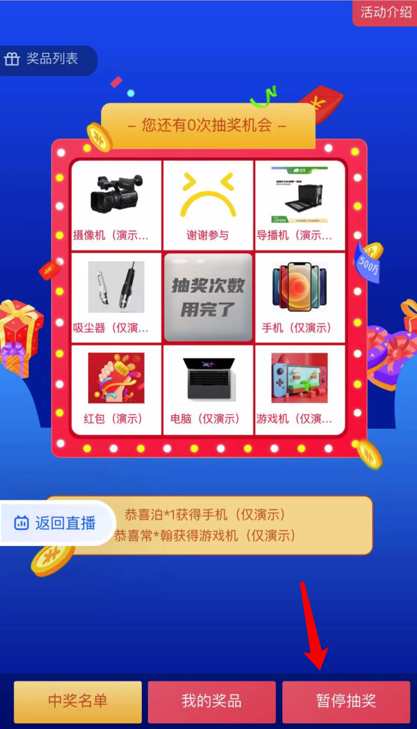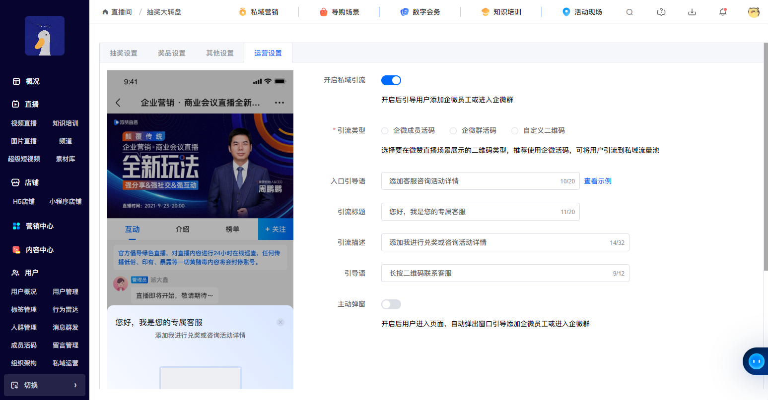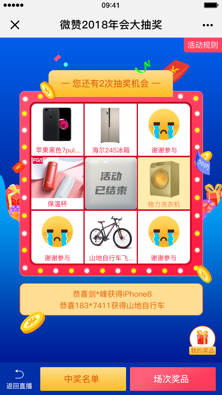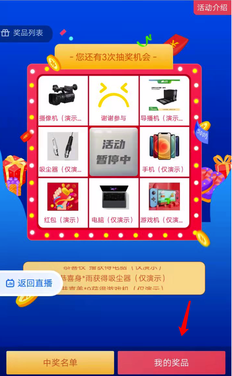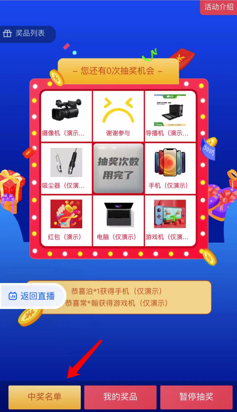 直播过程中添加抽奖可以活跃气氛,增加直播间人气,也可以促进用户签到抽奖,收集用户信息,促进直播吸粉