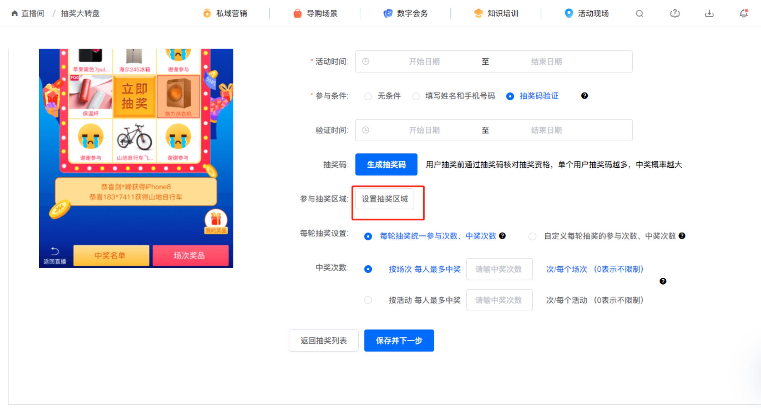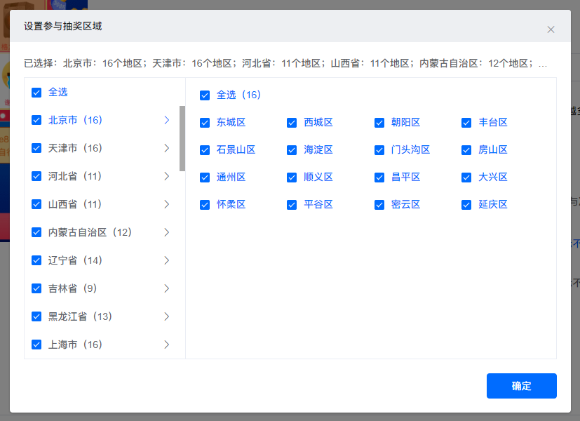 (5)参与抽奖区域:支持设置抽奖区域,可多选