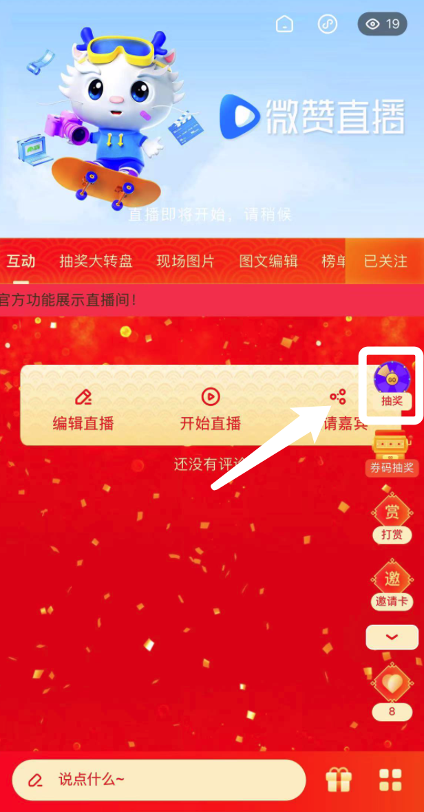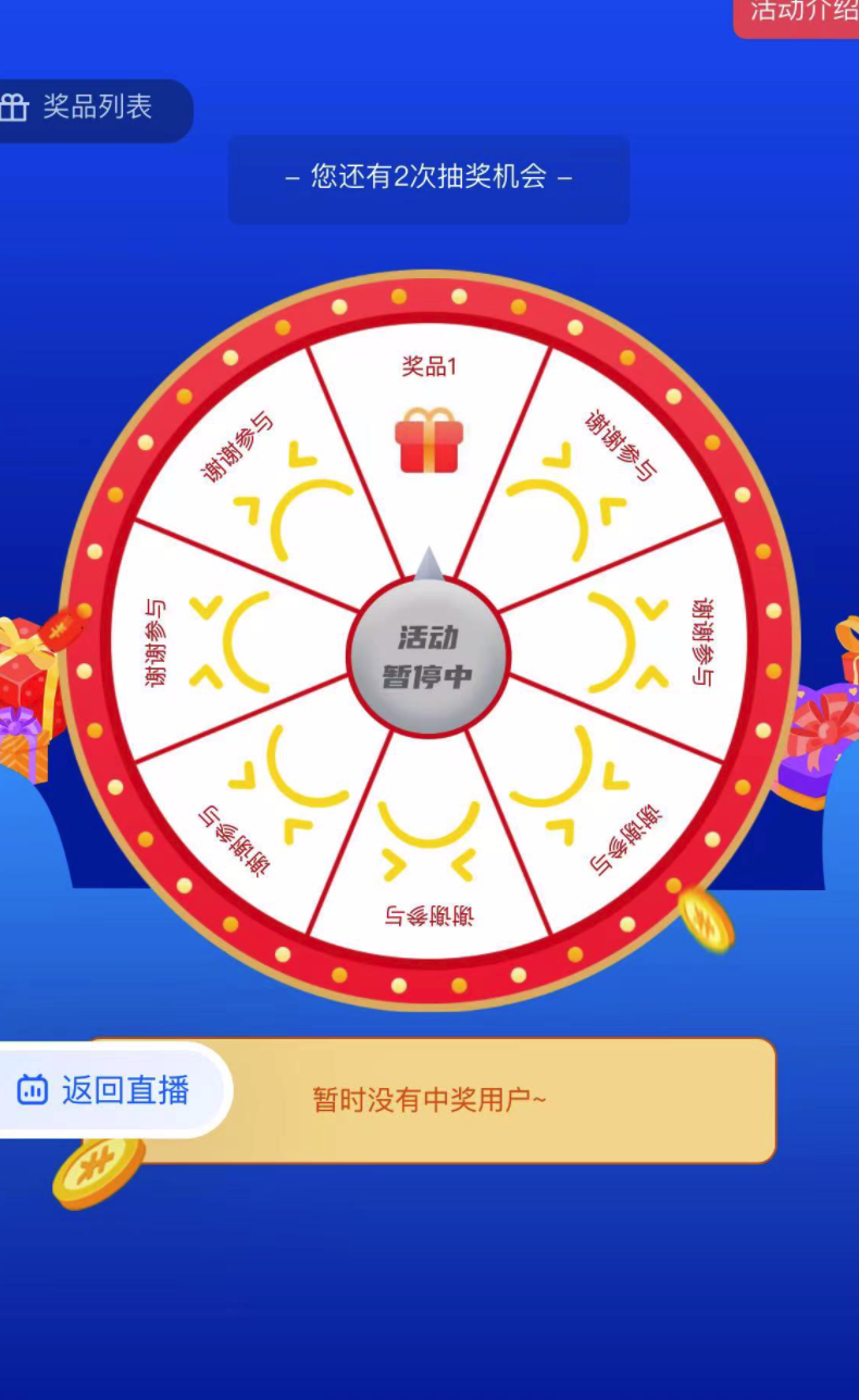 点击【抽奖】可以参加抽奖活动(首次进入直播话题会自动弹出抽奖)