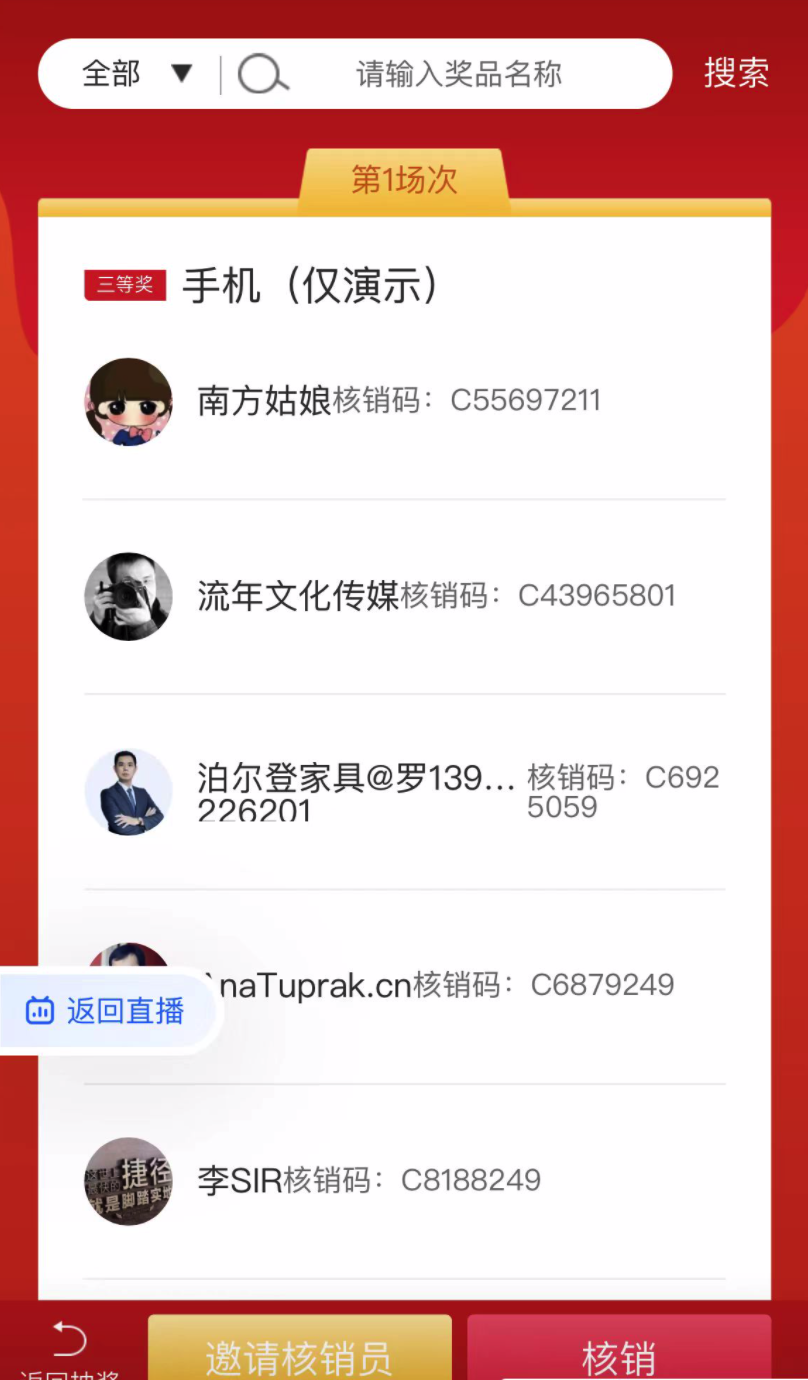 点击【中奖名单】可以查看中奖名单(支持搜索查询)